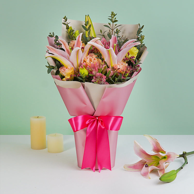 We're so glad you're happy with your lilies and the arrangement. Thanks for the lovely feedback! 😊