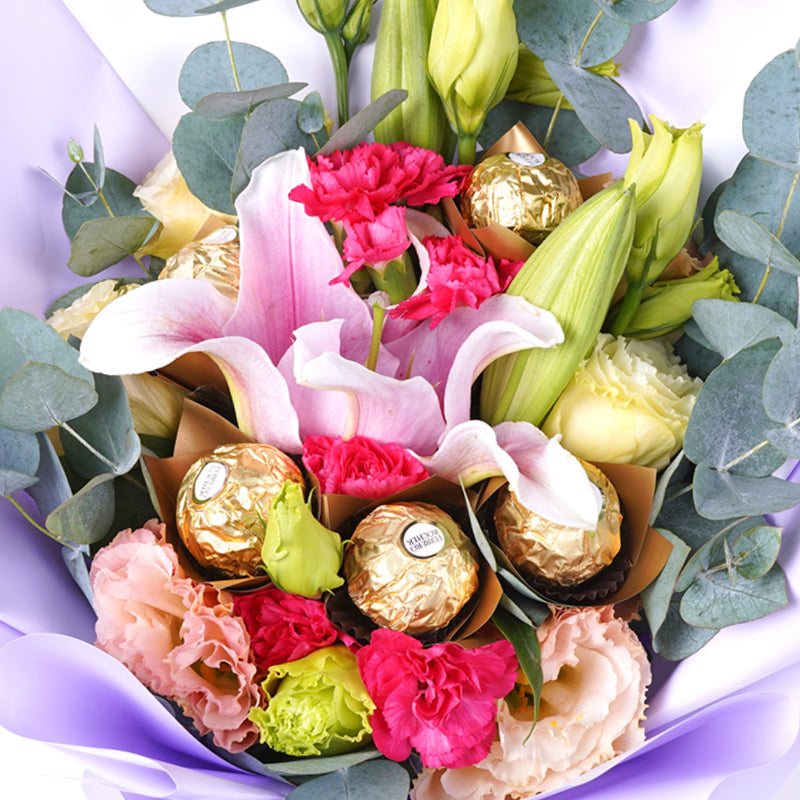 Thankful that the delivery guy made it on time despite the rainy weather. However the lily in the bouquet was already wilted when it arrived at the recipient.