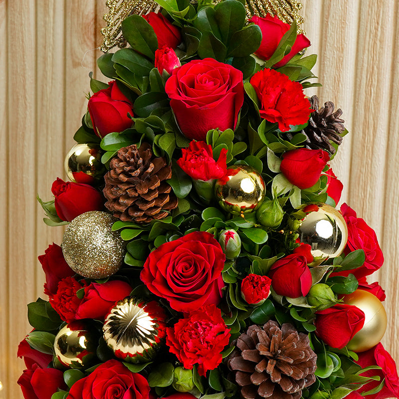The pinecones and some flowers were detached from the arrangement. There was no packaging to protect the arrangement. The design is really nice and festive if only it can arrive to its destination not detached.