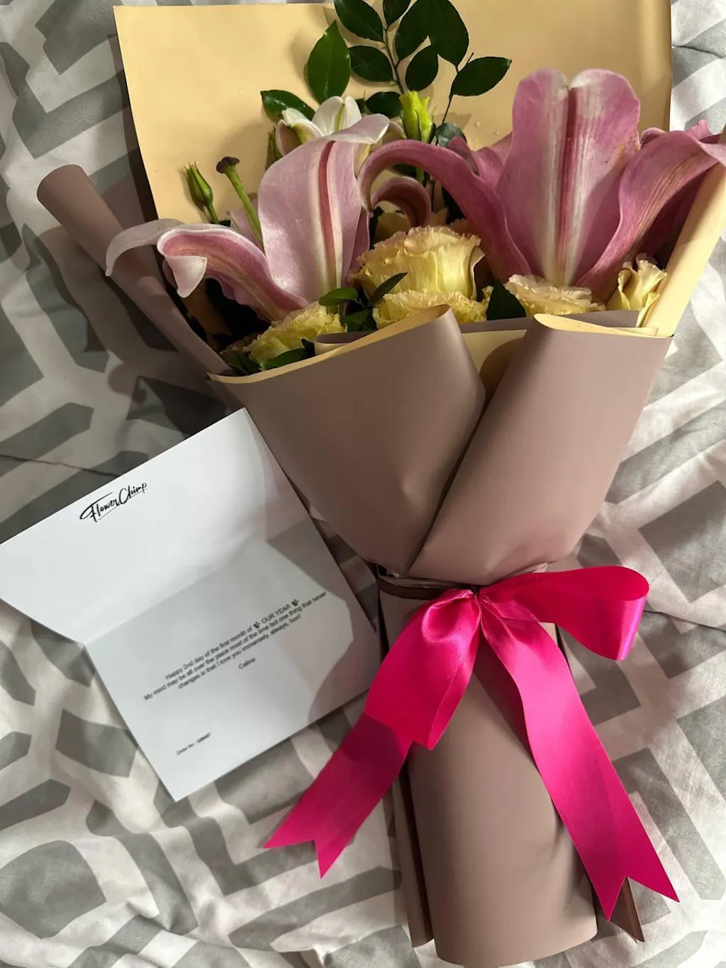 My partner was pleasantly surprised when the flowers came. As usual, reliable delivery service provided by the Batangas team. I ordered on the day and it arrived without hassle. The arrangement and fresh blooms were consistently outstanding. Always will be my go-to flower place. Thanks, FlowerChimp!